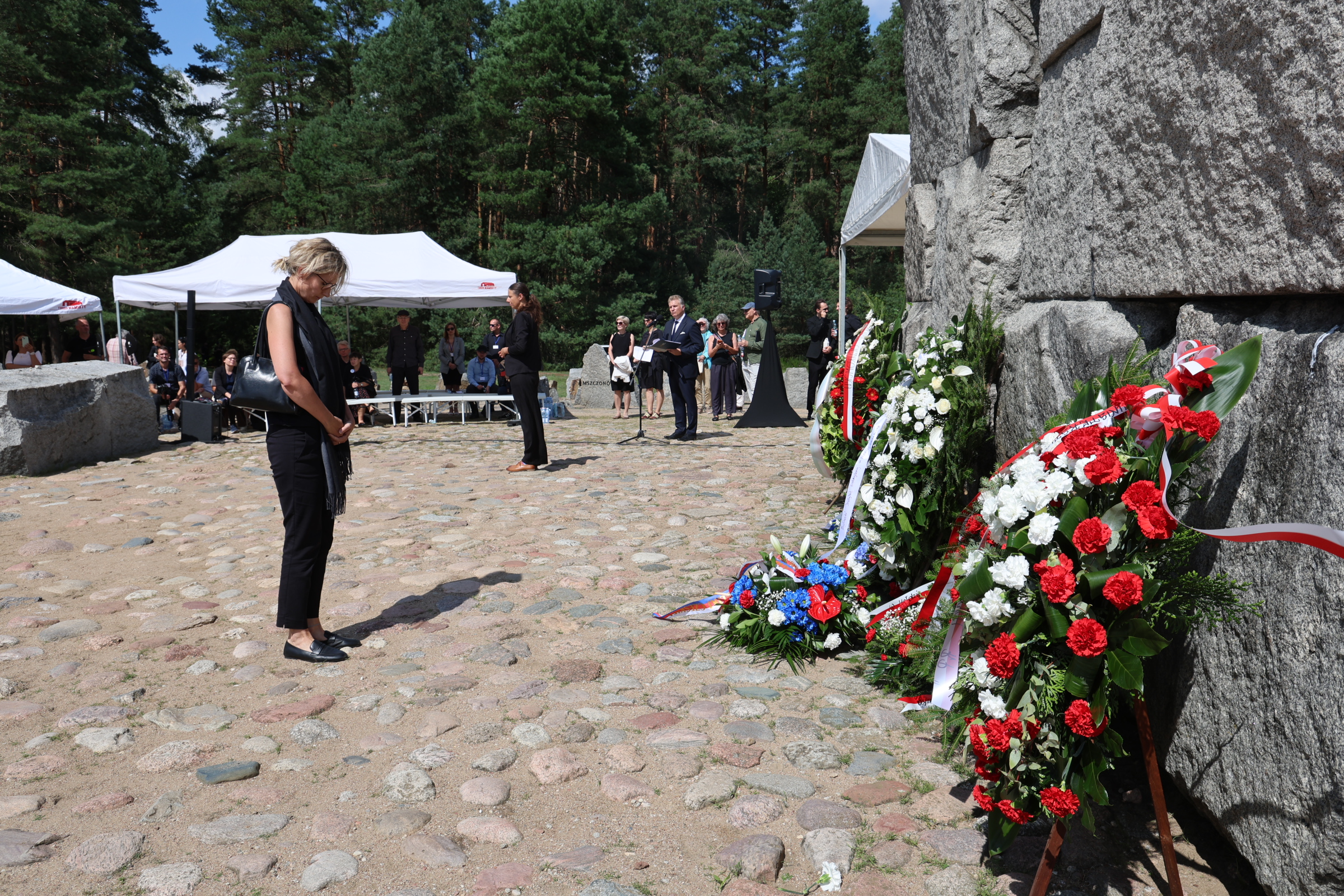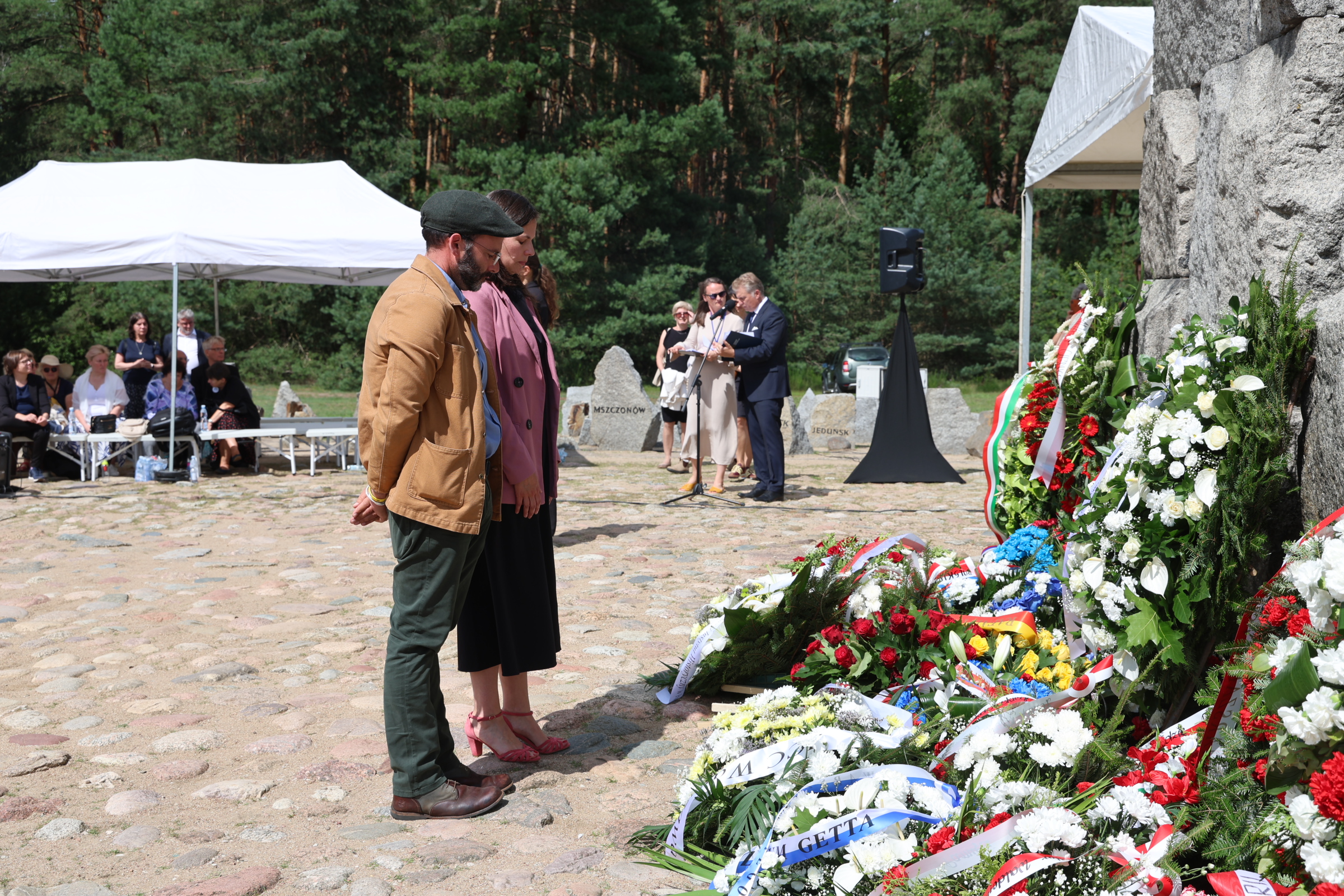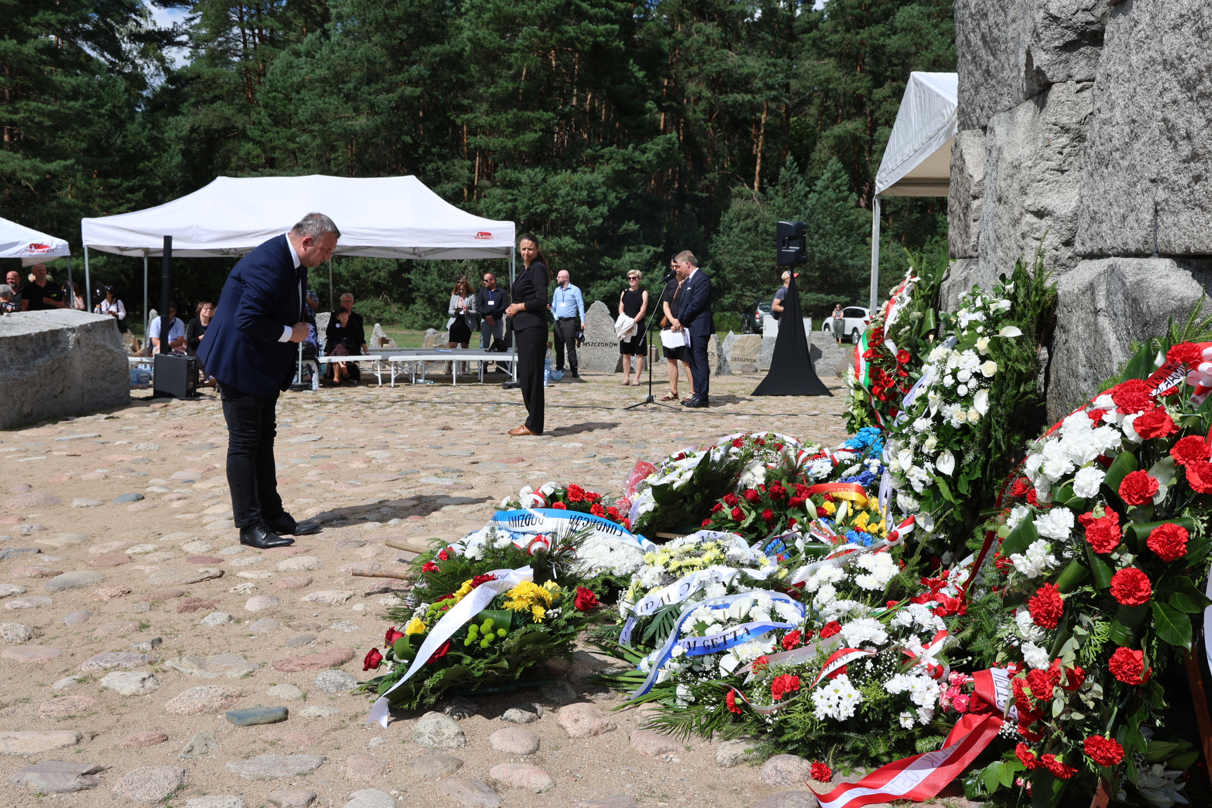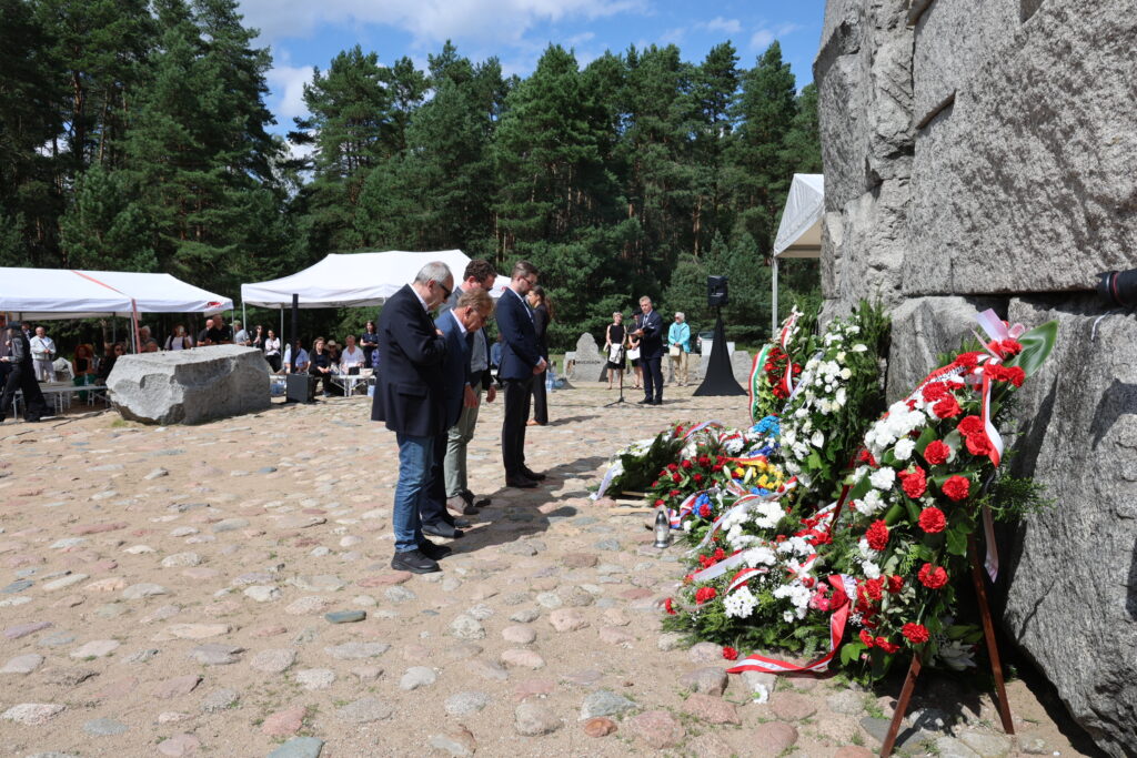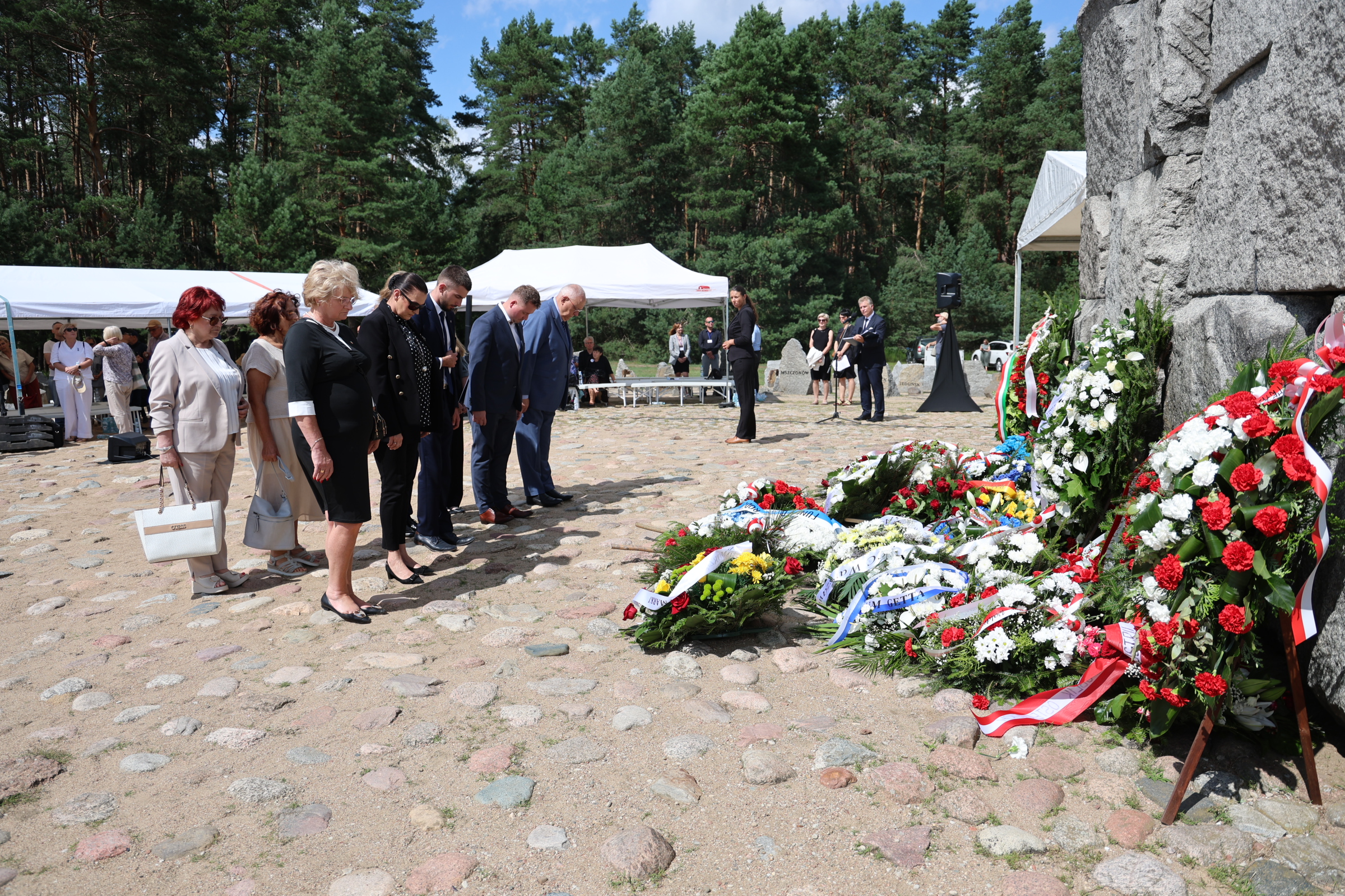 W tak ważnym dniu delegacje: Żydowskiego Instytutu Historycznego, Starostwa Powiatowego w Sokołowie Podlaskim, Polskiego Towarzystwa Sprawiedliwych Wśród Narodów Świata oraz Muzeum Treblinka oddali również hołd Ofiarom Obozu Pracy Treblinka I składając kwiaty na Miejscu Straceń i przy Pomniku Romów i Sinti.