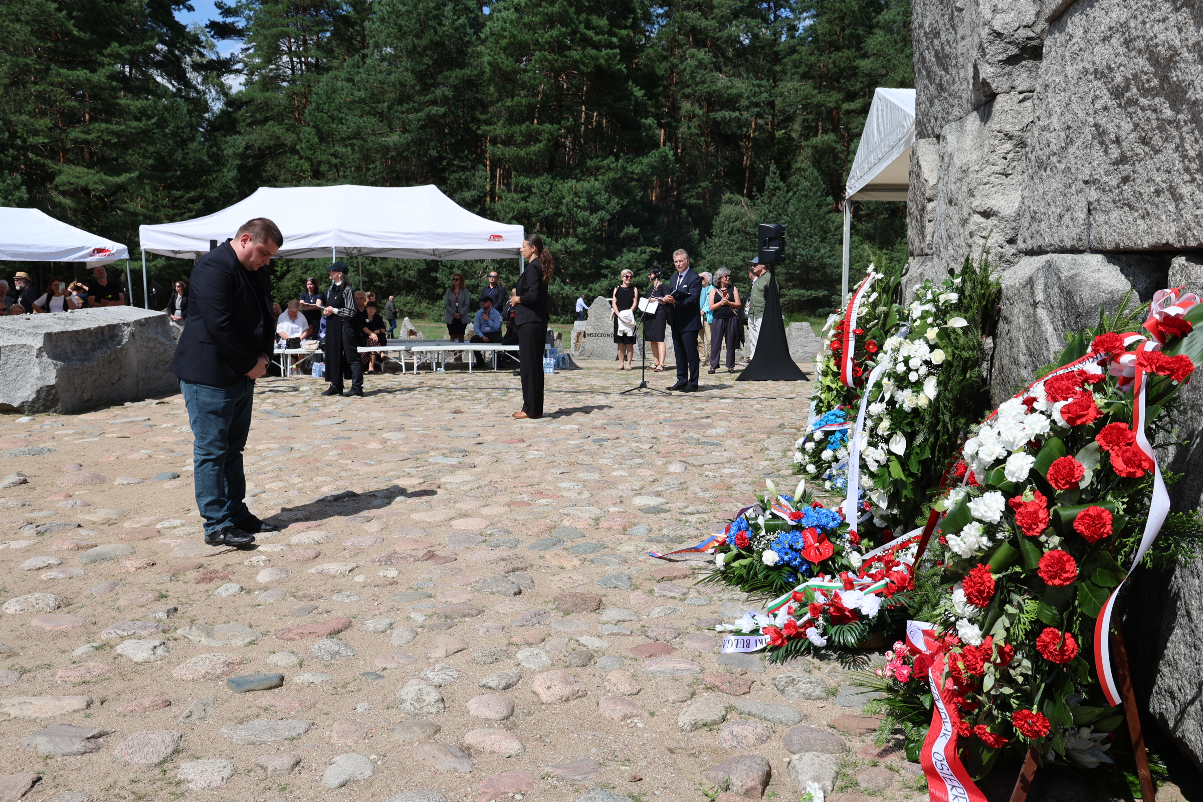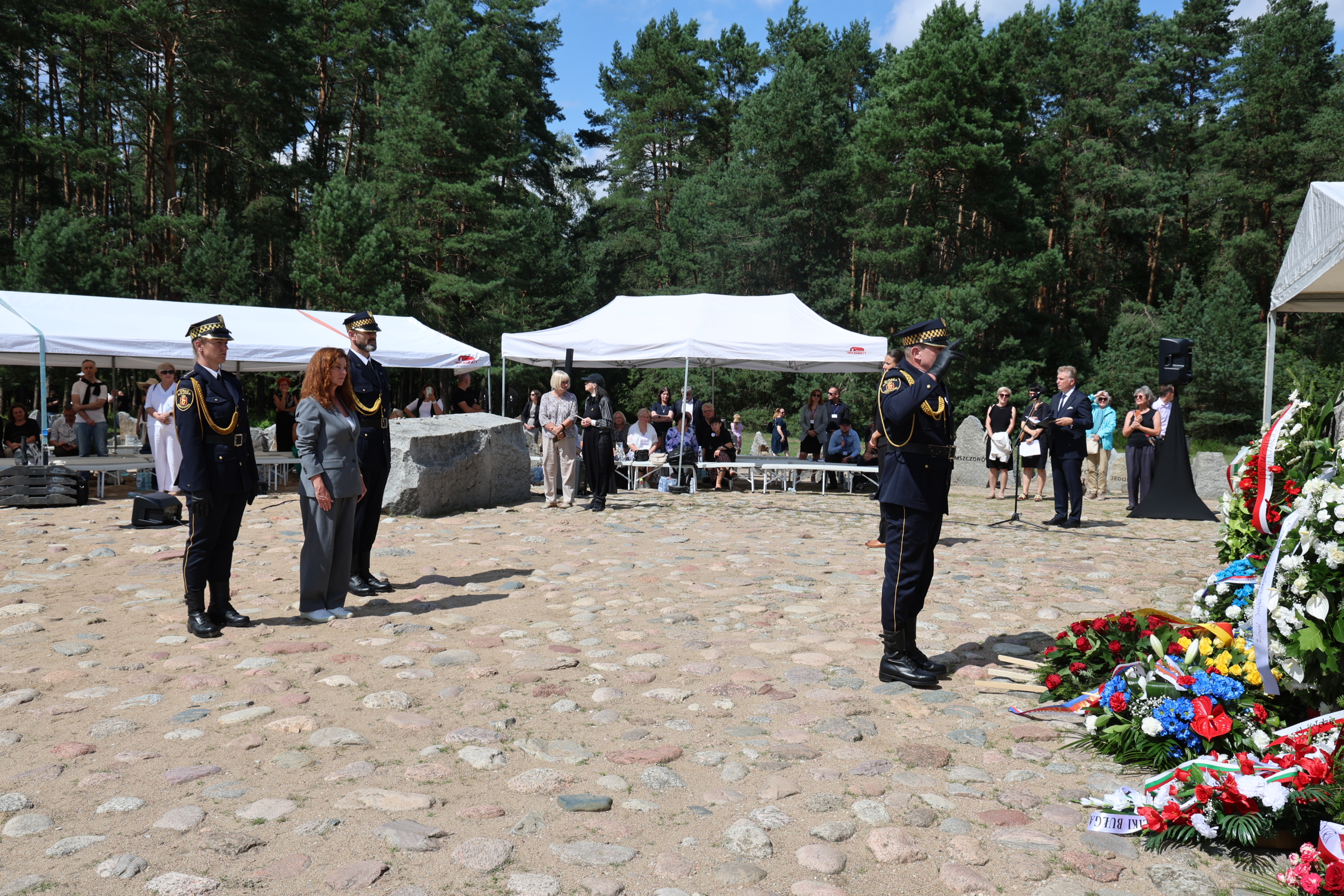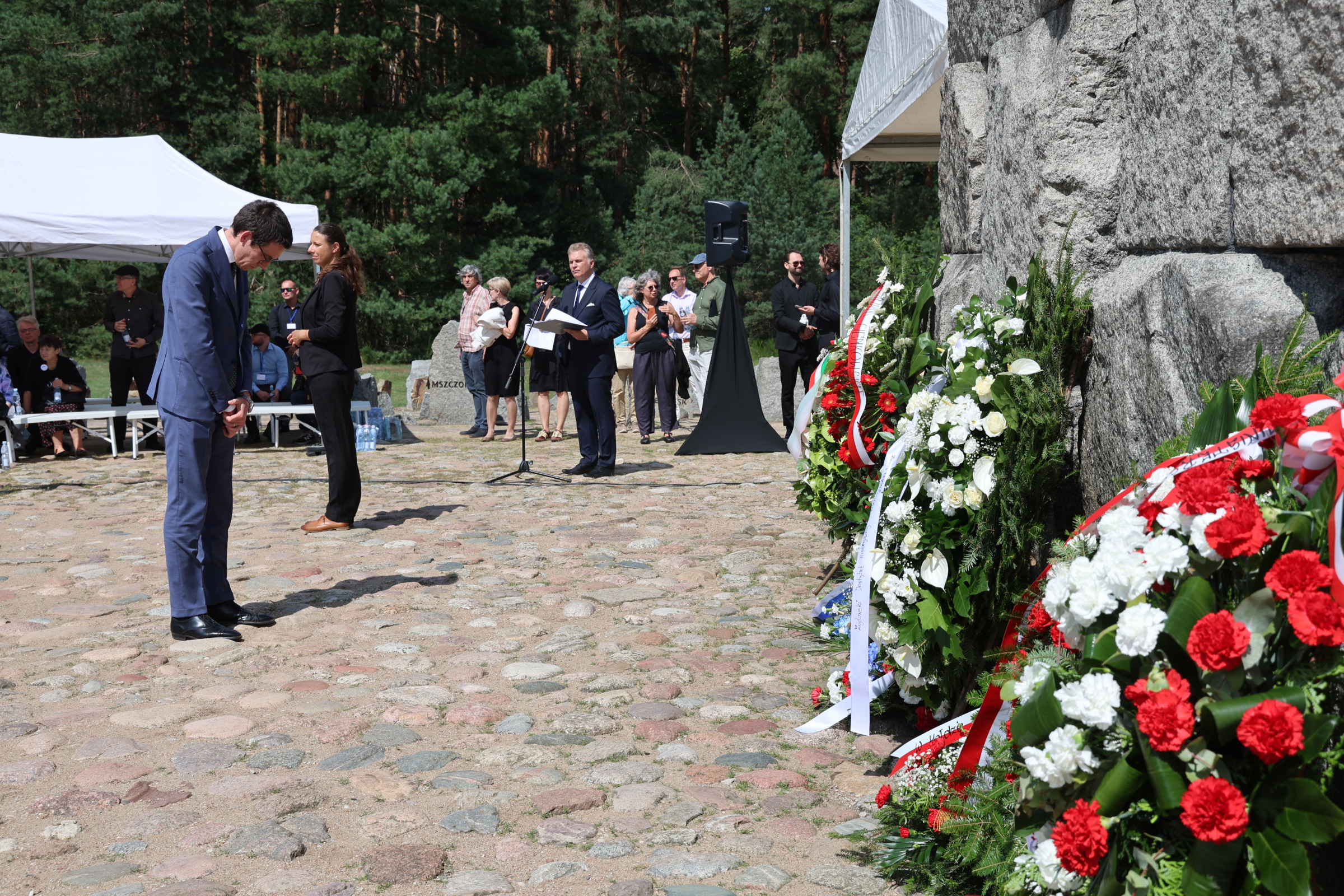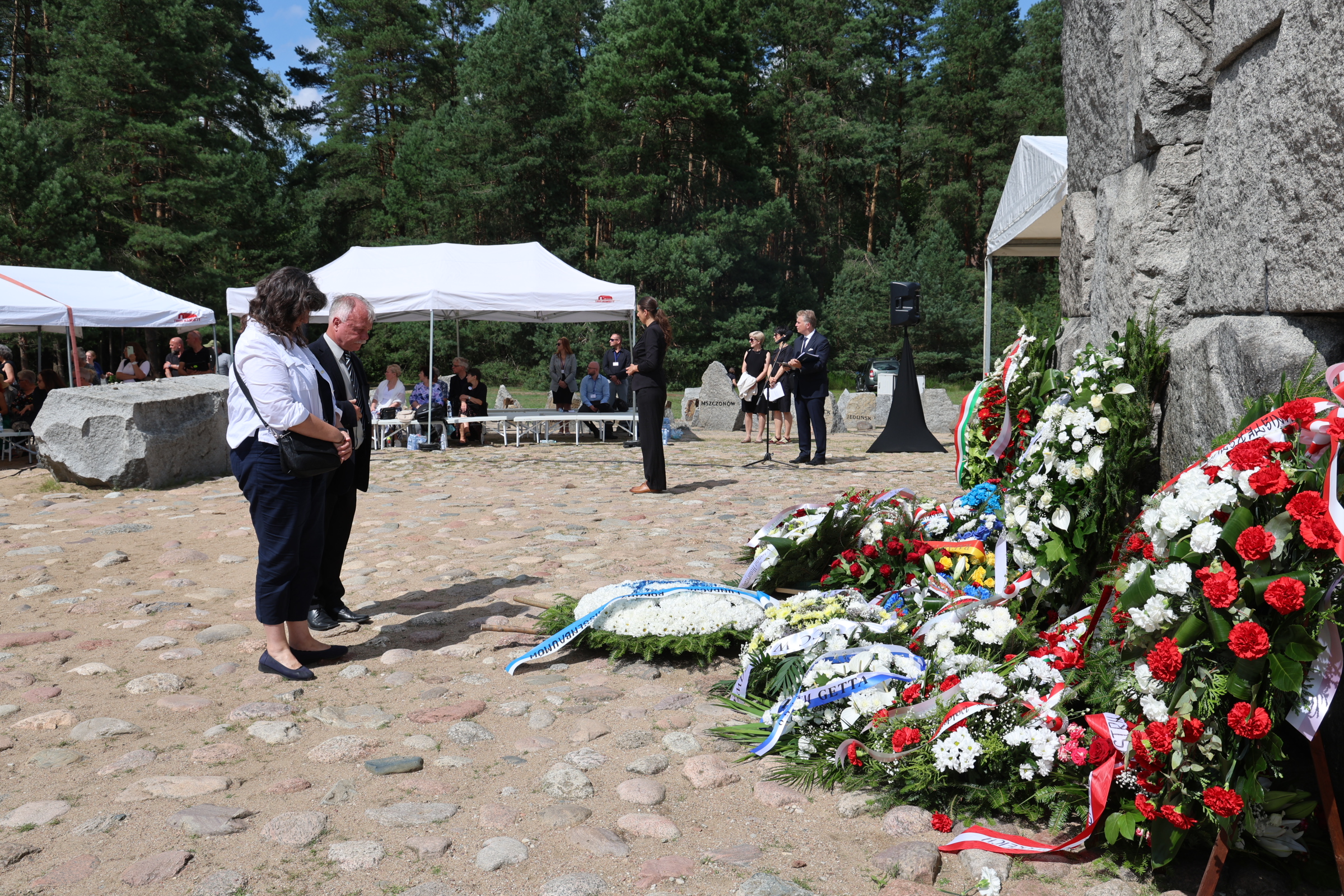 W tak ważnym dniu delegacje: Żydowskiego Instytutu Historycznego, Starostwa Powiatowego w Sokołowie Podlaskim, Polskiego Towarzystwa Sprawiedliwych Wśród Narodów Świata oraz Muzeum Treblinka oddali również hołd Ofiarom Obozu Pracy Treblinka I składając kwiaty na Miejscu Straceń i przy Pomniku Romów i Sinti.