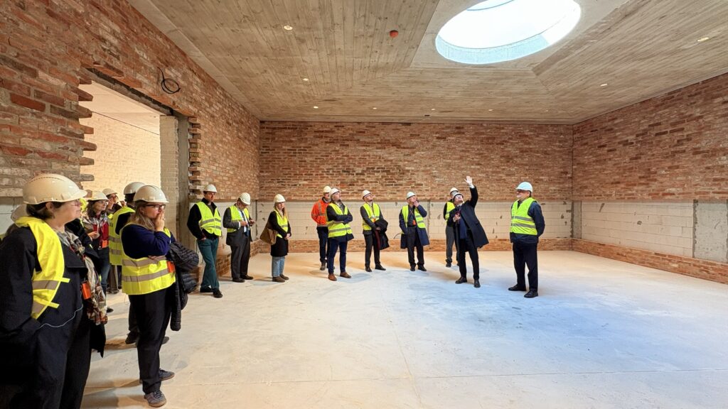 The Council members then proceeded to the site of the new exhibition and education building currently under construction, where they were presented with the progress of the works and the concept of the future exhibition.